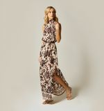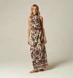 This asymmetric long dress is a bold fashion statement. With a design that plays with symmetry, it offers an elegant cut that stands out for its originality. Made with high-quality materials, it ensures comfort and style at any event. Its fluid silhouette and unique details make it an essential piece in the wardrobe of any fashion enthusiast.
